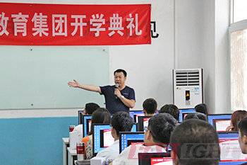 图一、华清远见教育科技集团总裁季老师为开学典礼致辞 |