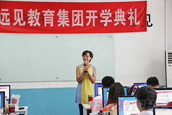 图二、华清远见教育科技集团副总裁贾老师为开学典礼致辞 |