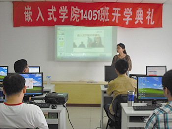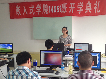 后是教学部孟老师结合就业情况为大家介绍嵌入式的课程体系与学习方法。课程大体分三个阶段四个部分:基础准备阶段、应用编程阶段、底层开发阶段、真实项目阶段,还详细地介绍了每一期学习的内容、特点与任务,特别是要注重动手能力,平时遇到问题要多思考,多交流,每个学习阶段都有不同的侧重点与学习任务,这就希望大家上课能认真听讲,课后多复习、多练习,这样更有助于大家的学习 。后,孟老师给予学员们在学习过程中提了几点建议,希望学员们在学习过程中能劳逸结合,找准学习方法,有目的、有计划的学习,课后学会巩固,以一位准嵌入式工程师标准来时刻要求自己。