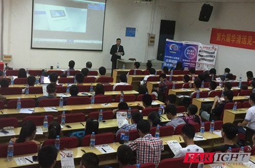 2016年5月21日,周六下午,第六届华清远见-ARM全国巡回技术讲座——武汉站在湖北第二师范学院成功举行。本次讲座是由华清远见教育科技集团联手ARM公司共同举办的。讲座围绕着智能家居、智能交通、智能仪器的开发运用而展开,同时还引入大学生智能创新大赛。现场来宾都是对智能开发有着浓厚兴趣的在校学生或是已处在智能开发工作岗位前沿的社会人才,我们的讲座内容丰富有趣,理论与仪器相结合,大家对此也是颇为赞赏。 讲座正式开始的时间是下午1点半,在下午1点之后就有参会人员依次签到入场,到会人员签到时每人都领了一份调查问卷表。讲座中间会有3轮抽奖环节,而抽奖唯一凭证就是调查问卷的有效信息。1点到1点半之间,我们华清的老师在大厅外面展示了我们的教材和自主研发的智能手环,智能手表,智能小车,智能家居等设备,大家对我们设备很有兴趣。在听了我们老师的讲解和演示之后,有学生自己也动手操控了我们研发的智能小车。