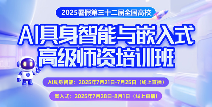 为深入贯彻落实《国务院关于印发新一代人工智能发展规划的通知》及教育部《高等学校人工智能创新行动计划》精神,积极响应教育部关于加强高校人工智能学科建设的部署要求,同时顺应嵌入式系统朝着高性能、多模块协同和智能化的发展趋势,满足社会对嵌入式及人工智能人才的迫切需求,提升高校教师在相关领域的教学与科研能力,培养具备前沿 IT 知识的师资力量,由华清远见教育科技集团主办,软件行业协会嵌入式系统分会、ST 支持,举办 “2025 暑假第三十二届全国高校师资培训班(多模态大模型与具身智能方向)” 和 “2025 暑假第三十二届全国高校师资培训班(嵌入式方向)”。